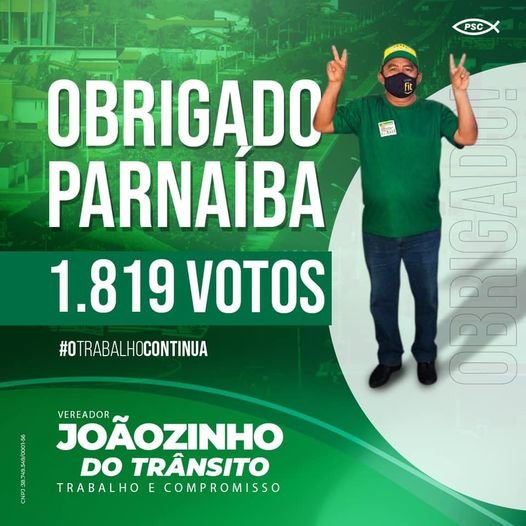 O vereador Joãozinho do Trânsito (PSC) tem todos os motivos para comemorar sua reeleição, com uma votação que surpreendeu a muitos. Fruto de um trabalho diuturno, com humildade, sempre correndo atrás da execução de seus projetos e requerimentos e registrando os fatos, para conhecimento dos parnaibanos. Valeu, vereador! Parabéns!!!!