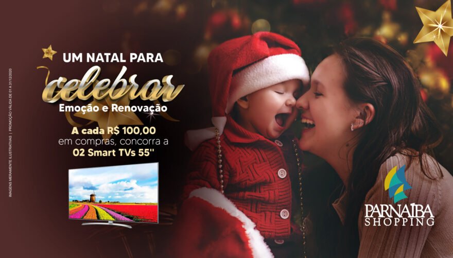 Chegou o natal, período em que todas as pessoas ficam mais emotivas e com uma razão a mais para presentear aqueles que amam. Com o tema “Um Natal para Celebrar: Emoção e Renovação”, em 2020, o Parnaíba Shopping quer que todos possam refletir sobre o verdadeiro sentido dessa época, principalmente diante desse cenário de pandemia pelo qual o mundo inteiro está vivendo. Como campanha de premiação, duas Smart TVs de 55 polegadas serão sorteadas ao público.