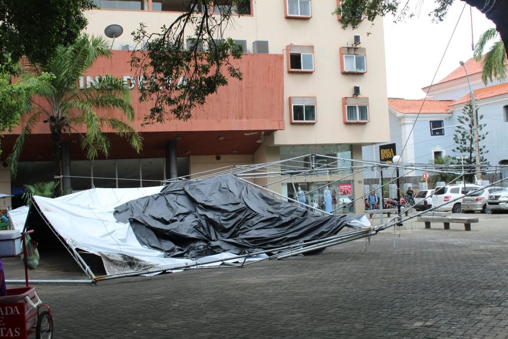 Outro ponto da cidade que foi atingido foi a Avenida São Sebastião um verdadeiro diluvio. Até a tenda da Praça da Graça que abrigava comerciantes da Feira Popular de Arte sofreu com temporal de ontem. A previsão é de mais água para quinta-feira (14/02).