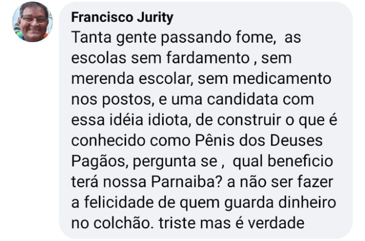 Agora, um ano depois, os defensores do governo Mão Santa voltam a falar do tal obelisco, através de redes sociais, como se a obra já estivesse construída. Parece deboche, No facebook, o ex-vereador de Parnaíba, empresário Francisco Jurity, fez um comentário ácido a respeito da tal obra: