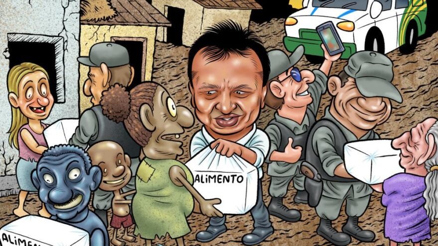 Charge retrata ação de policiais na periferia em benefício do pré-candidato Fábio Abreu