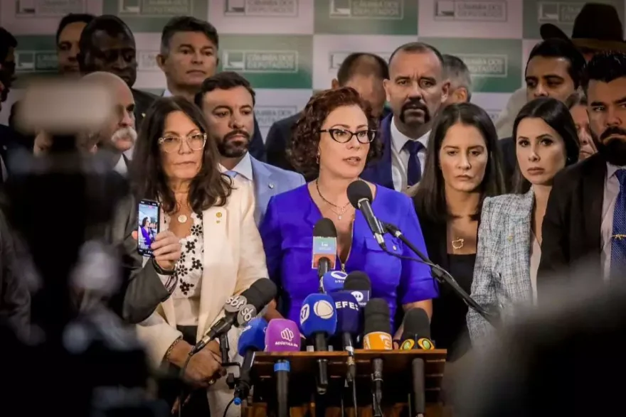 Coletiva da oposição para pedir o impeachment de Lula, na Câmara dos Deputados. (Foto: Diego Queiroz)