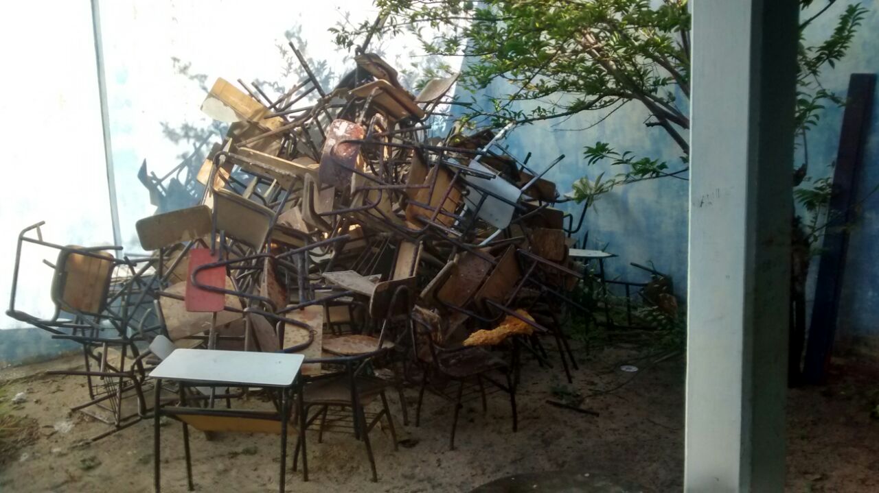 Foi encaminhado a redação do Blog do Pessoa, o pedido para que a Secretaria Municipal de Educação (Seduc), providencie a retirada de várias carteiras estudantis antigas que estão apenas ocupando espaço no pátio da Escola Professor Antônio Thomaz, no bairro João XXIII.