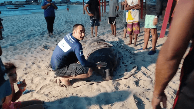 O peixe-boi foi avistado por moradores por volta das 7 horas. Já por volta das 15 horas, o animal foi visto novamente e as ONGs Aquasis, Comissão Ilha Ativa e o Instituto Chico Mendes da Biodiversidade (ICMBio) foram até a praia para realizar o resgate.