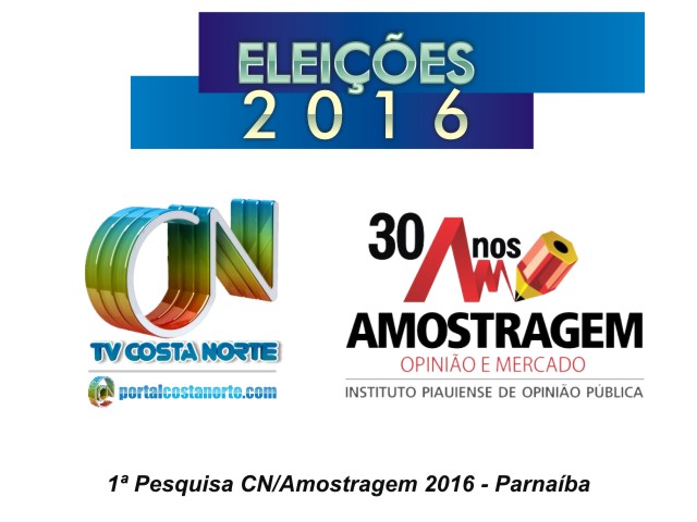 Tv Costa Norte e o Portal Costa Norte iniciam nesta segunda-feira (8) à divulgação da primeira rodada de pesquisas CN/AMOSTRAGEM referente às intenções de voto para pré-candidatos a prefeito e vereador com vista às eleições de outubro  de 2016 na cidade de Parnaíba.