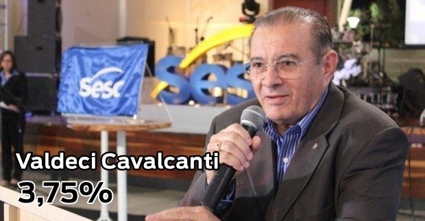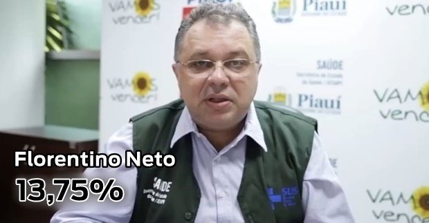 Em quarto e em quinto lugar, seguem quase acirrados Valdeci Cavalcante (presidente da Fecomércio), com 3,75% e, após ele, vem Castro Neto (filho do Senador Marcelo Castro) com 3,25% nas intenções de voto. Veja os dados: