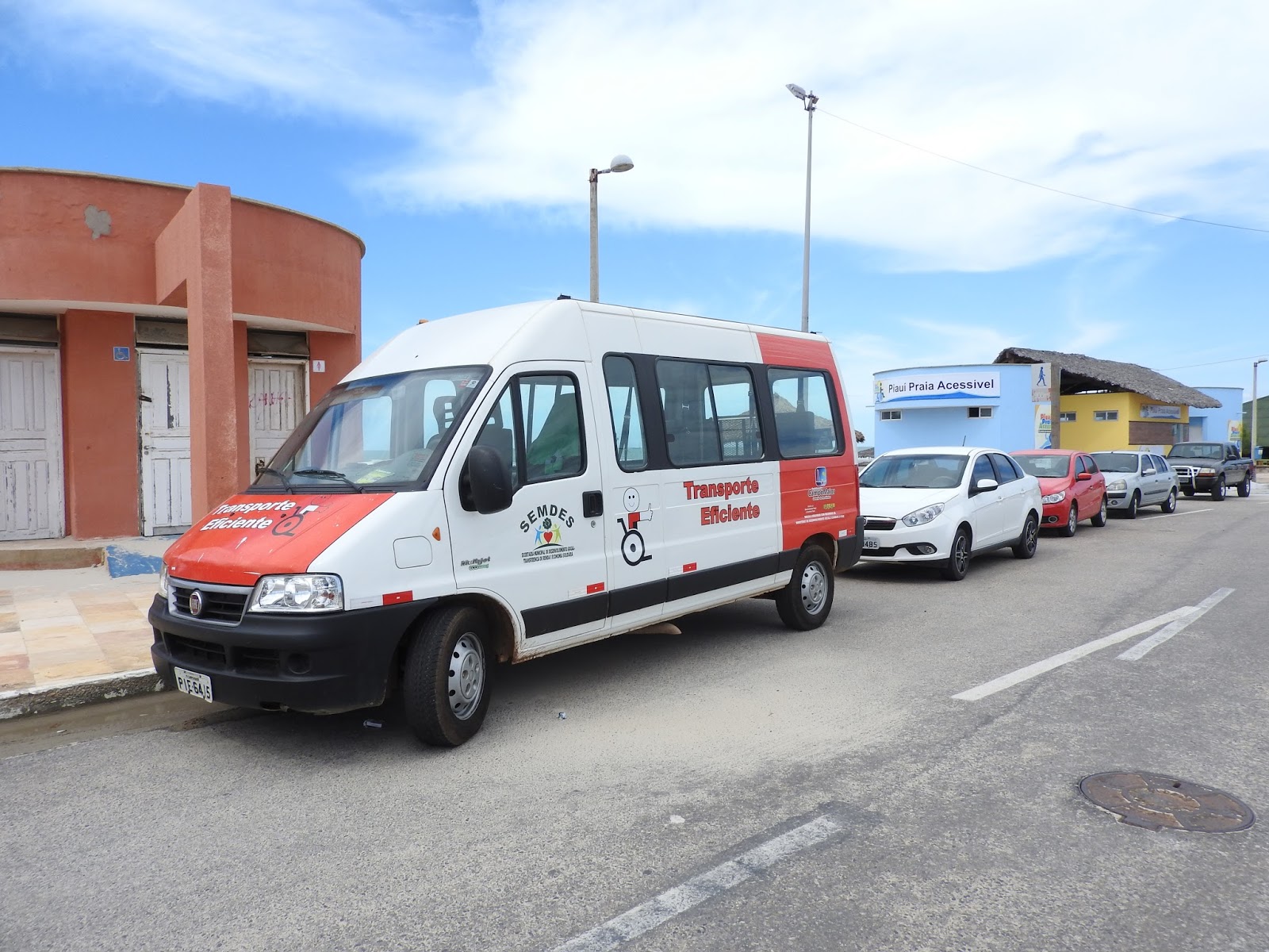 Constatamos também, próximo as instalações do Piauí Praia Acessível uma van da Secretaria de Desenvolvimento Social – Semdes – Transporte Eficiente, da Prefeitura de Campo Maior, que muito provavelmente teria levado cadeirantes para usar o equipamento, mas não encontramos o motorista, ou mesmo alguém que nos desse informações.