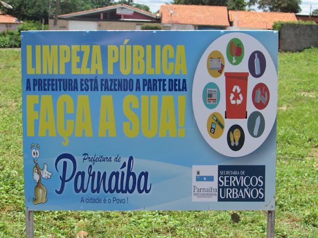 As Secretarias Municipais de Infraestrutura e de Serviços Urbanos, por determinação da secretária Maria das Graças Nunes, continuam com a limpeza e posterior colocação de placas educativas nos pontos críticos de acúmulo de lixo em Parnaíba. Dezenas de placas com a mensagem “A Prefeitura está fazendo a parte dela: faça a sua”, podem ser vistas nos terrenos baldios nos quatro cantos da cidade.