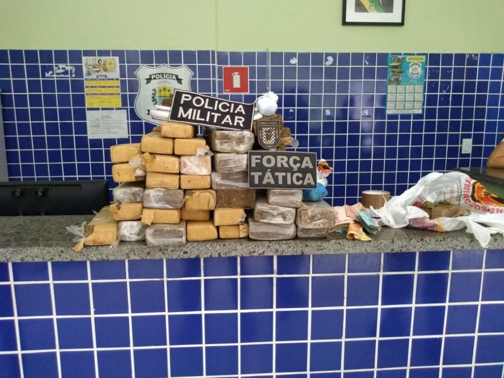Foram presos em flagrante Maicon Freitas Oliveira, Maria Isabel Sousa dos Santos e Marilene Oliveira Ferreira. Com os três foram apreendidos 27,9 kg de maconha e aproximadamente 800 gramas de cocaína, além de R$ 2.885 em dinheiro trocado.