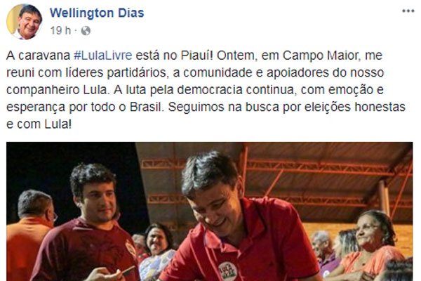 CONDENADO POR CORRUPÇÃO E LAVAGEM – A campanha para soltarem o ex-presidente condenado e preso por corrupção e lavagem de dinheiro continua pelo Piauí.