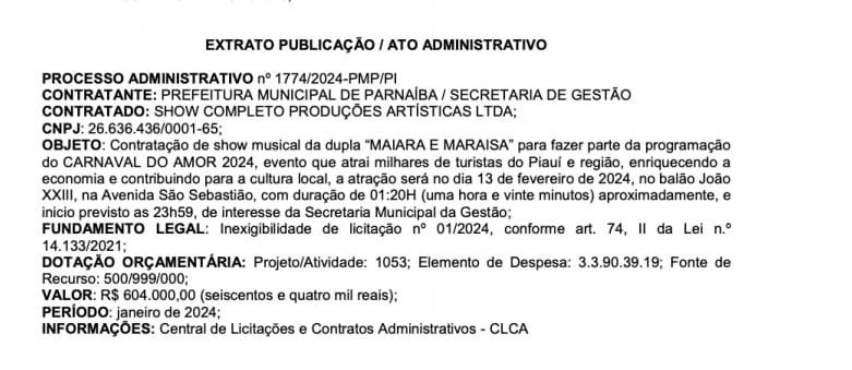“Prefeito(a) de Parnaíba vai gastar no carnaval mais de UM MILHÃO com apenas duas atrações musicais