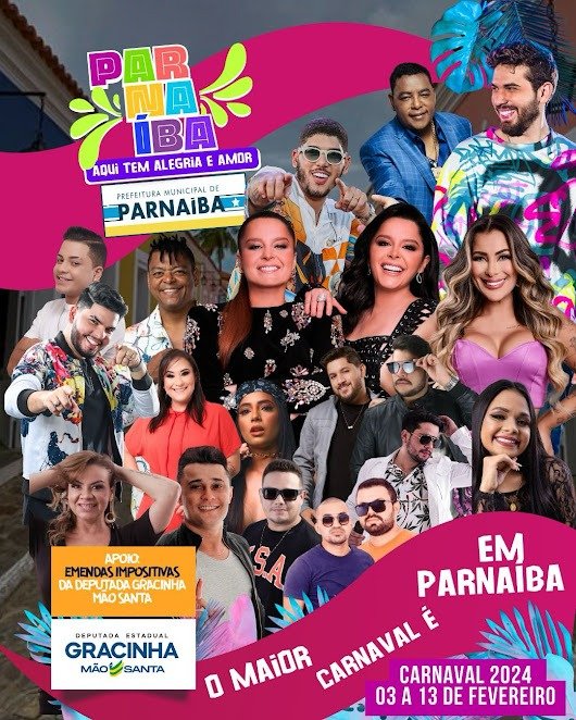 Com certeza NÃO será o melhor do Nordeste, como apregoam, mas, sem dúvidas, o carnaval de Parnaíba deverá um dos mais caros dentre as cidades de porte médio de toda a região. Basta citar que dentre inúmeras atrações já anunciadas, com apenas duas delas vão ser “torrados” mais de UM MILHÃO DE REAIS  do erário público, numa cidade onde a população clama pelo básico, como um atendimento pelo menos sofrível nos postos de saúde.