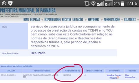Mesmo contando em seus quadros com um corpo de 48 advogados, a Prefeitura de Parnaíba ainda paga R$ 196.320,00 para um escritório de advocacia em Teresina. Um custo mensal de R$ 16.360,00, em quatro anos chegando a R$ 785.380,00.
