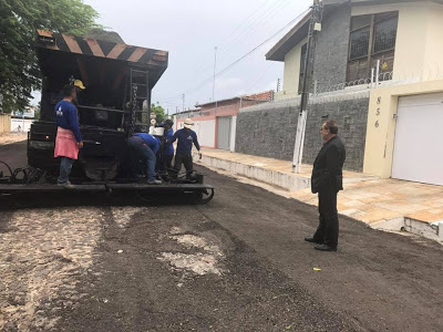 O prefeito de Parnaíba,Francisco de Assis Moraes Souza,Mão Santa,esteve na tarde desta quarta-feira(05),visitando a obra de asfaltamento da rua Costa Fernandes, localizada no bairro de Fátima. Mão Santa chegou de viagem hoje pela manhã e nem teve tempo para descanso, inclusive teve agenda administrativa na Prefeitura.