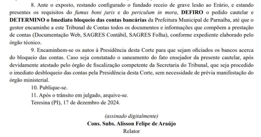 Sexta-feira passada, dia 20, o Tribunal de Contas do Estado publicou em seu Diário Oficial Eletrônico o bloqueio das contas da prefeitura (falta de prestação de contas), a mesma que apregoam estar organizada, possuir uma gestão que é modelo, enfim, uma série de baboseiras que só convencem mesmo os que se deixaram imbecilizar ao longo destes 8 anos que estão findando. (B.Silva)