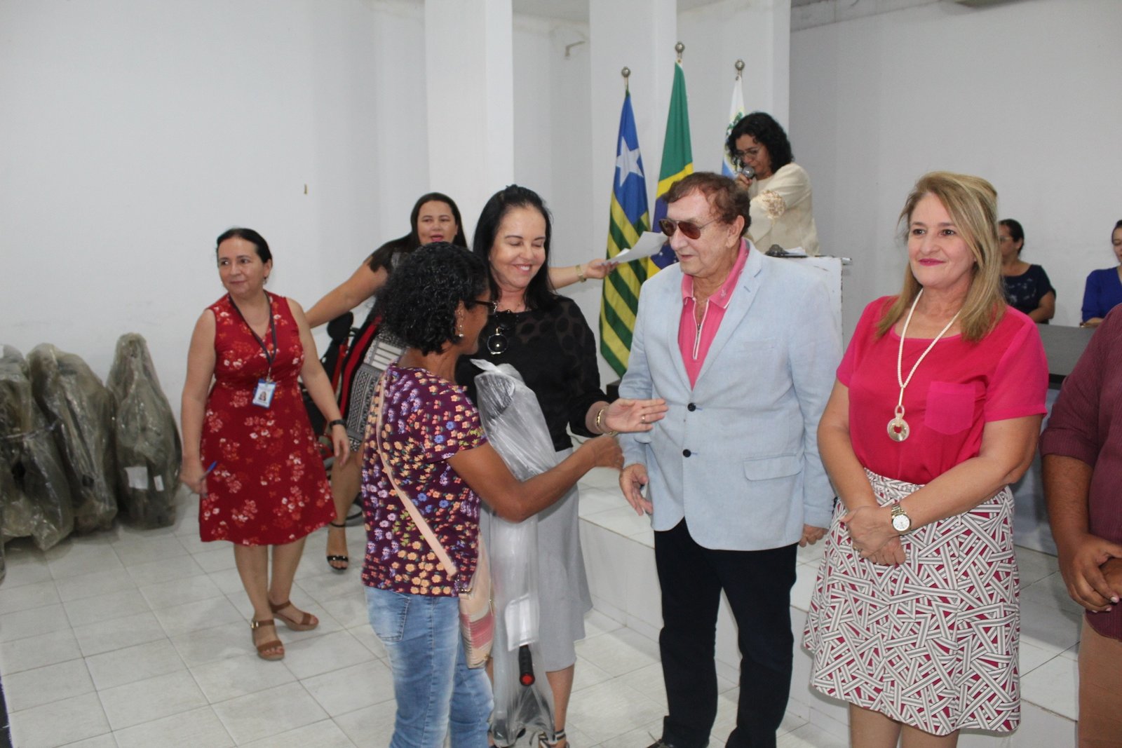 Em solenidade realizada na manhã de hoje (5) no auditório da Prefeitura, na Rua Itaúna, com a presença do Prefeito Francisco de Assis Moraes Sousa, foi feita a entrega, através das Secretarias de Saúde e da SEDESC (Secretaria do Desenvolvimento Social e Cidadania) de 19 cadeiras de roda, 9 sapatos específicos para pés diabéticos, uma cadeira de banho, além de vários andadores e bengalas para famílias carentes de vários bairros de Parnaíba.