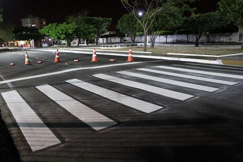 Vários pontos já foram recuperados e estão sinalizados com cones para evitar que veículos estraguem a pintura e para chamar atenção dos condutores, evitando assim possíveis acidentes. (Walter Fontenele).