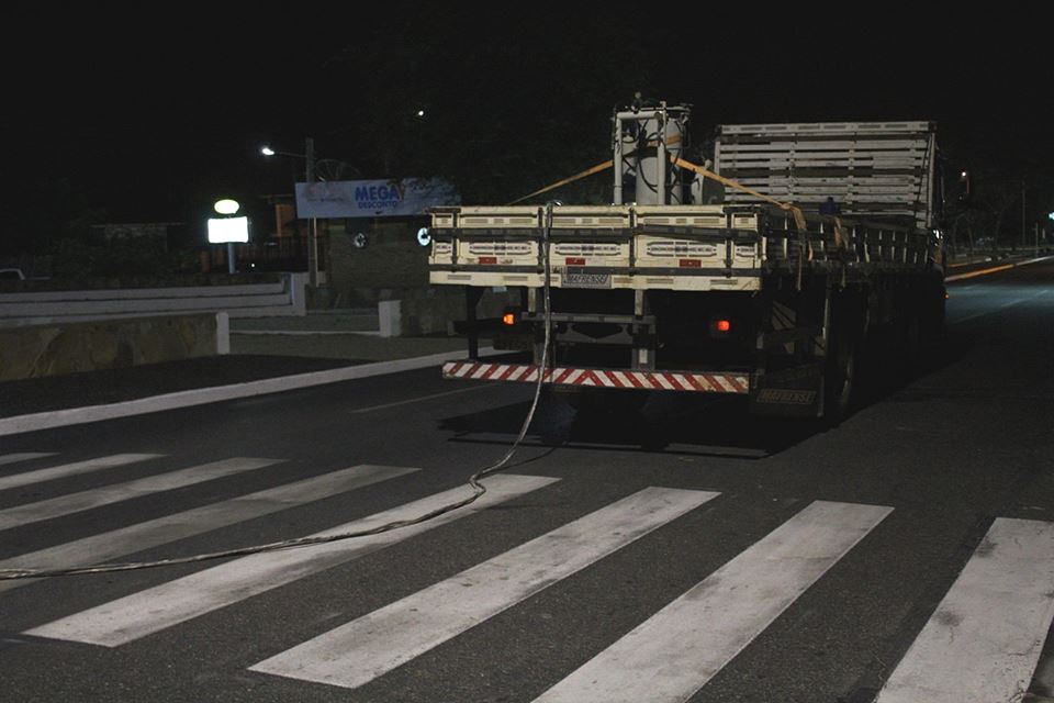 | Sinalização horizontal da Avenida São Sebastião sendo recuperada |