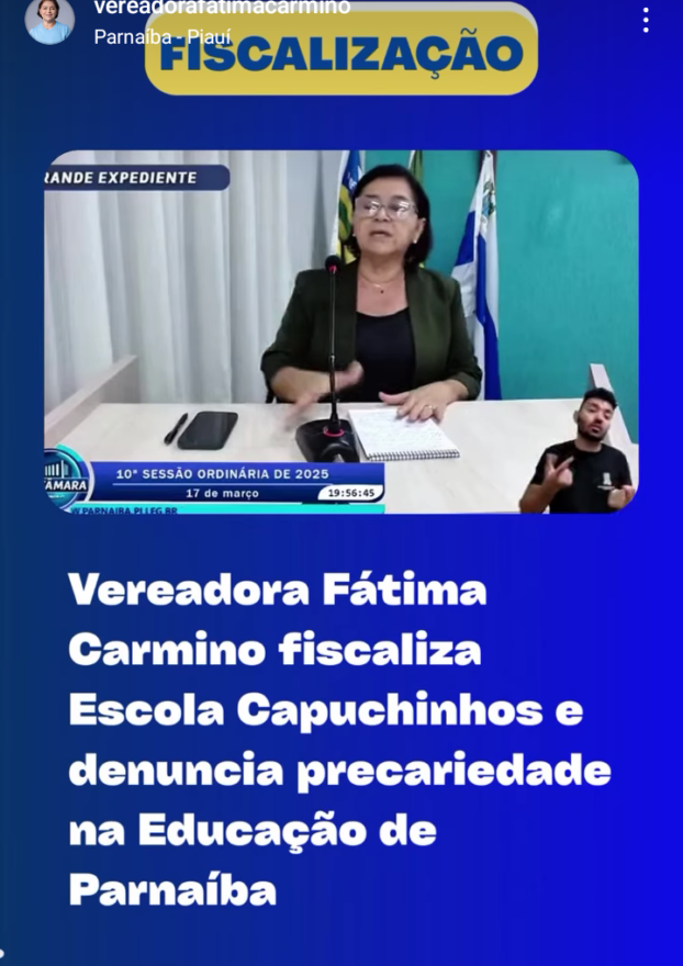 A Educação no Município de Parnaíba parece que não tem jeito e as precariedades seguem sendo denunciadas diariamente. A vereadora Fátima Carmino, por exemplo, esteve recentemente na Escola dos Capuchinhos e constattou problemas gravíssimos, que afetam diretamente a qualidade do ensino e o bem estar dos alunos e professores. Ela apresentou um requerimento na Câmara Municipal cobrando providências da Secretaria Municipal de Educação.