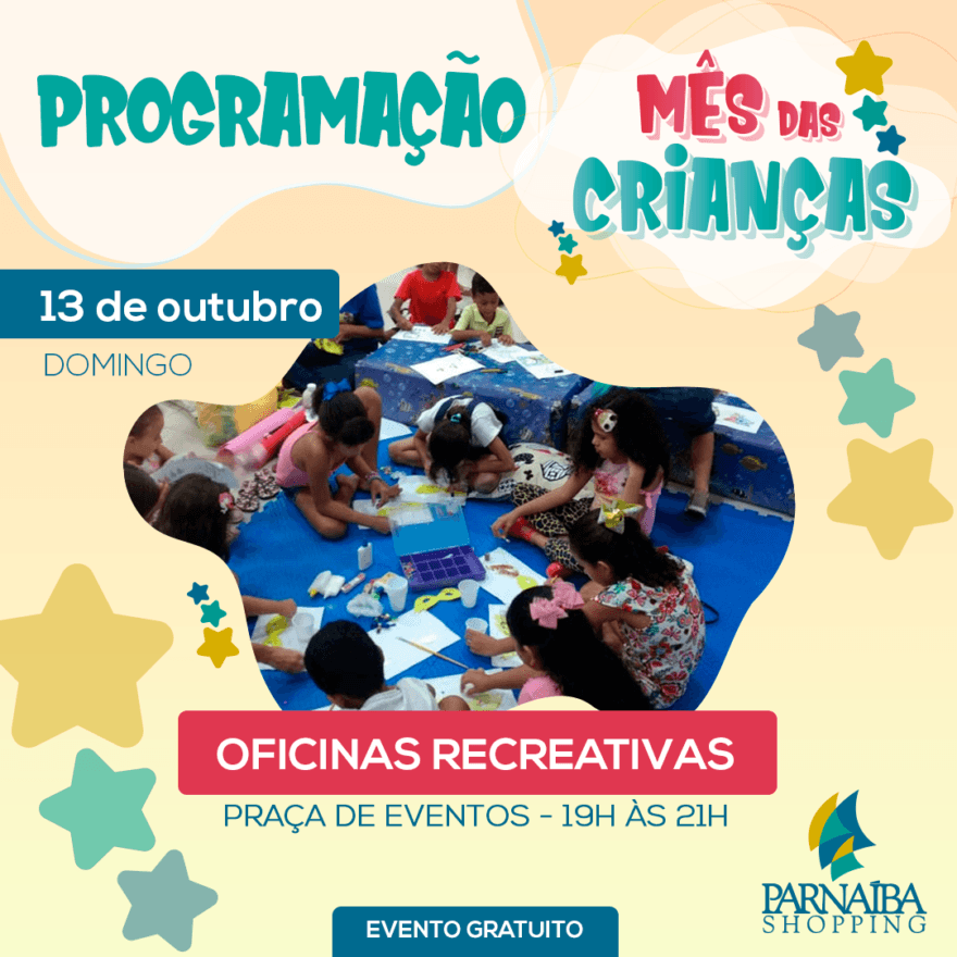 O mês das crianças está apenas começando e o Parnaíba Shopping preparou uma programação totalmente especial para essa turminha animada e toda a família. Serão shows musicais, oficinas, teatros, jogos, brincadeiras e até atividades físicas, tudo gratuito. Confira abaixo a programação agendada: