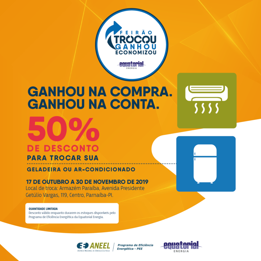O Vale Desconto para participação será distribuído por agentes da Equatorial somente na Loja do Armazém Paraíba, em Parnaíba, localizada no endereço Avenida Presidente Getúlio Vargas, Nº 119, Bairro Centro, que é o estabelecimento conveniado para a troca dos eletrodomésticos.