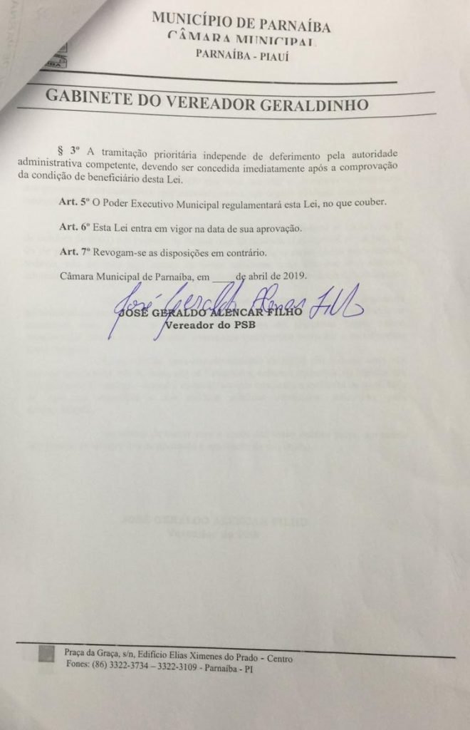 Ainda na sua justificativa o vereador Geraldo Alencar falou que o projeto será apenas uma complementação da legislação federal, uma vez que os vereadores cabem a atribuição de legislar em complemento à legislação federal e estadual, mas com objetivo de buscar sempre a melhoria da qualidade de vida dos munícipes  e dos serviços públicos oferecidos pelo município