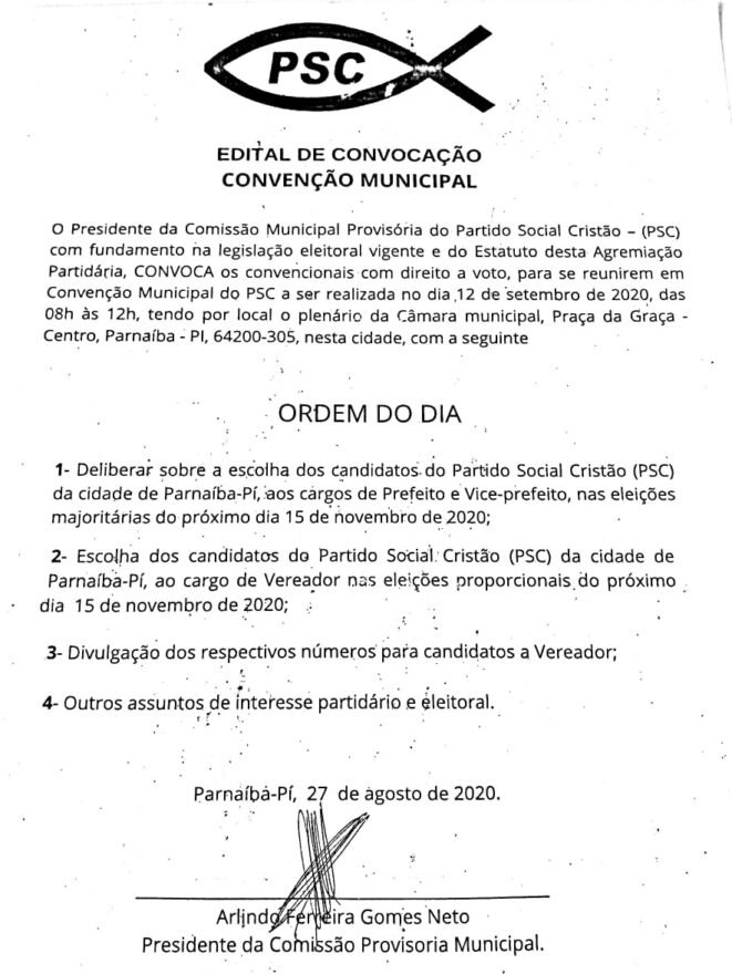 PSC de Parnaíba divulga data de sua Convenção Municipal Posted by Bernardo Silva on 28 de agosto de 2020 in Política Política