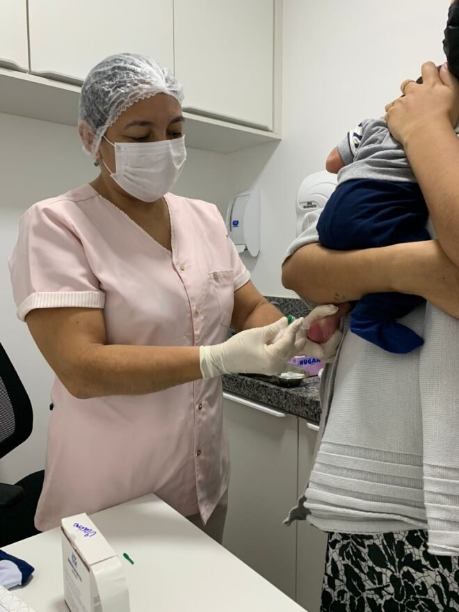 “A data ideal para a coleta de sangue é entre o 3º e o 5º dia de vida do recém-nascido, e aqui no Hospital e Maternidade Marques Basto a mãe e o recém-nascido já saem com a data marcada para o retorno e a realização do teste realizado no nosso ambulatório de pré-natal e puericultura. Assim como terá acesso às vacinas e acompanhamento nutricional”, explicou Simony Cardoso, psicóloga.