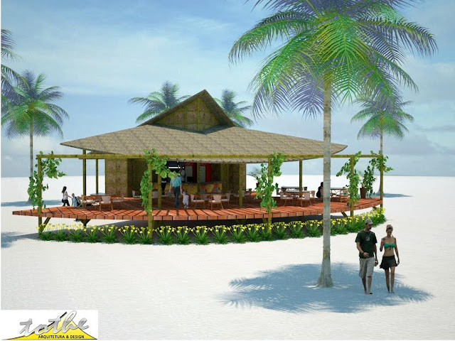 Na primeira etapa do empreendimento serão construídos 20 bares de arquitetura ecológica em palafitas, para que se adequem aos movimentos das areias ao vento. A estrutura dos bares será composta por paredes em pedra castelo em seu estado natural, com cobertura em telhas ecológicas. Já o piso será feito em tábuas com licença ambiental, de madeira estrutural em eucalipto autoclavado de reflorestamento. Vale ressaltar que no quesito paisagismo serão transplantados 150 coqueiros em porte médio.