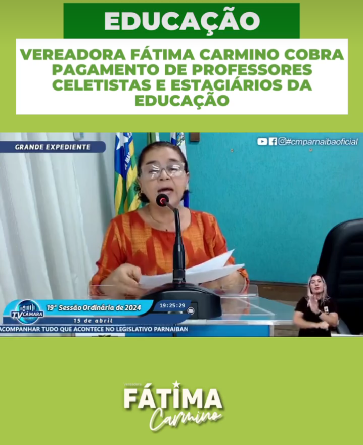 A vereadora Fátima Carmino (PT) apresentou requerimento, na sessão desta segunda-feira da Câmara Municipal, exigindo transparência e ação da Prefeitura de Parnaíba, para que sejam dadas explicações sobre o atraso no pagamento dos professores celetistas e dos estagiários da educação.