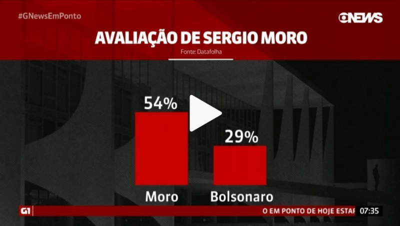 MELHOR AVALIADO – Para que se possa ter uma ideia do peso da perda de pontos para o governo, no caso de Sérgio Moro sair da Justiça, é bom destacar que a mais recente pesquisa do Datafolha analisada por Flávia Faria, também da Folha, Sérgio Moro é o membro do governo melhor avaliado pela população. Alcança 54% no campo positivo. Enquanto isso a aprovação de Bolsonaro fica contida no percentual de 29 pontos. Pelos números e pela atmosfera política do país, pode-se deduzir a dimensão do estrago que atingirá o Palácio do Planalto.