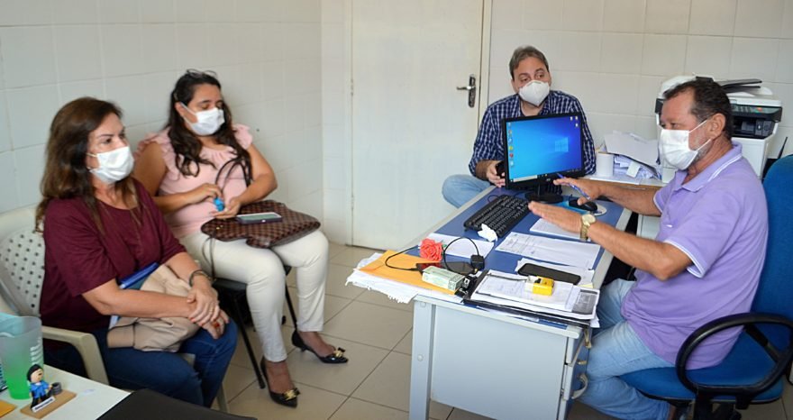 Em reunião com a Direção Administrativa e Clínica do Pronto Socorro de Parnaíba (PSM), na manhã desta segunda-feira(23), a Secretária Municipal de Saúde, Rejane Moreira, discutiu a organização do fluxo de atendimento para receber os pacientes com casos de Coronavírus (Covid-19) na cidade. Participaram do encontro o Diretor Administrativo do Pronto Socorro, Paulo José de Sousa Araújo “Paulo Careca”; o Diretor Clínico do PSM, Dr. Vitor Carneiro; a Diretora do Instituto Práxis, Adriana Kelly Almeida Ferreira; a Coordenadora do SAMU, Isabel Cristina Marques Coutinho e o enfermeiro do Samu, Flaviano Aragão.