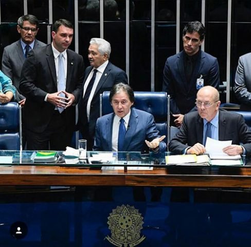 Foi uma visita rápida e informal durante sessão presidida pelo presidente do Congresso Nacional, Eunício Oliveira (MDB-CE). A recepção de Elmano ao filho do presidente eleito sinaliza para afinidade política do senador da bancada piauiense com o núcleo do governo que será comandado por Jair Bolsonaro a partir de janeiro de 2019. (Elivaldo Barbosa)