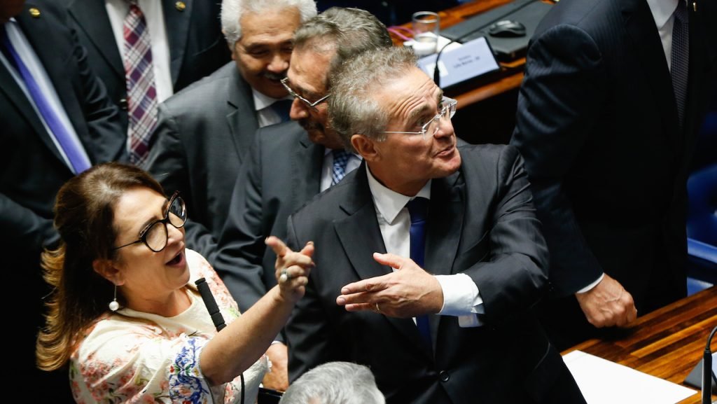 Renan Calheiros e Kátia Abreu, que ‘roubou’ pasta com documentos da presidência, comandaram a desmoralização. Foto: Walterson Rosa/Folhapress