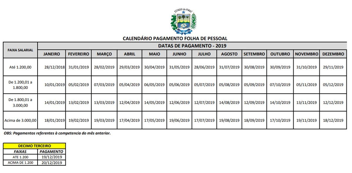 O governo do Piauí marcou para dia 10 de janeiro o pagamento de servidores com remuneração entre R$ 1.200,01 a R$ 1.800,00. É a data para o depósito da primeira parcela do repasse do Fundo de Participação dos Estados.