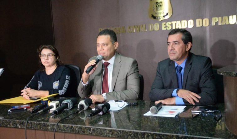 As informações foram repassada pela polícia em coletiva. Da direita para a esquerda: delegada Rejane Piauilino, delegado Riedel Batista e delegado Willame Morais (Foto: Elias Fontinele/O Dia)