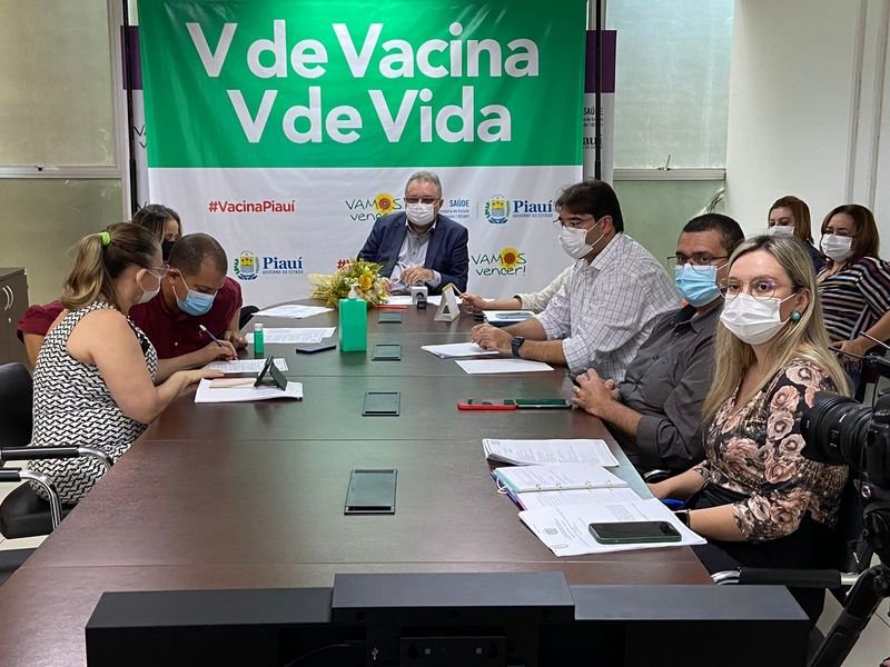 articiparam da reunião, a Diretora da DIVISA, Tatiana Chaves; o Superintendente do Hospital Universitário da UFPI, Paulo Márcio; o presidente da Fundação Municipal de Saúde, Gilberto Albuquerque; a vice-presidente do Cosems e Secretária Municipal de Saúde de Miguel Alves, Leopoldina Cipriano; a Coordenadora Geral do Samu, Christianne Moura Fé e a Gerente de Atenção à Saúde Mental, Virginia da Silva.