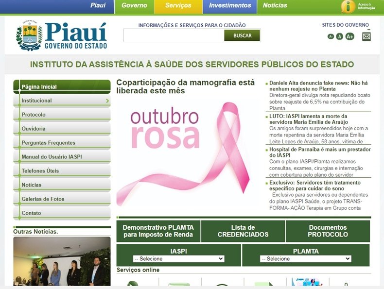 O site do IASPI (Instituto de Assistência à Saúde dos Servidores Públicos do Estado do Piauí) voltou a ser atualizado após o período eleitoral. O sítio eletrônico retorna após uma fake news sobre o reajuste no Plamta circular nas redes sociais.