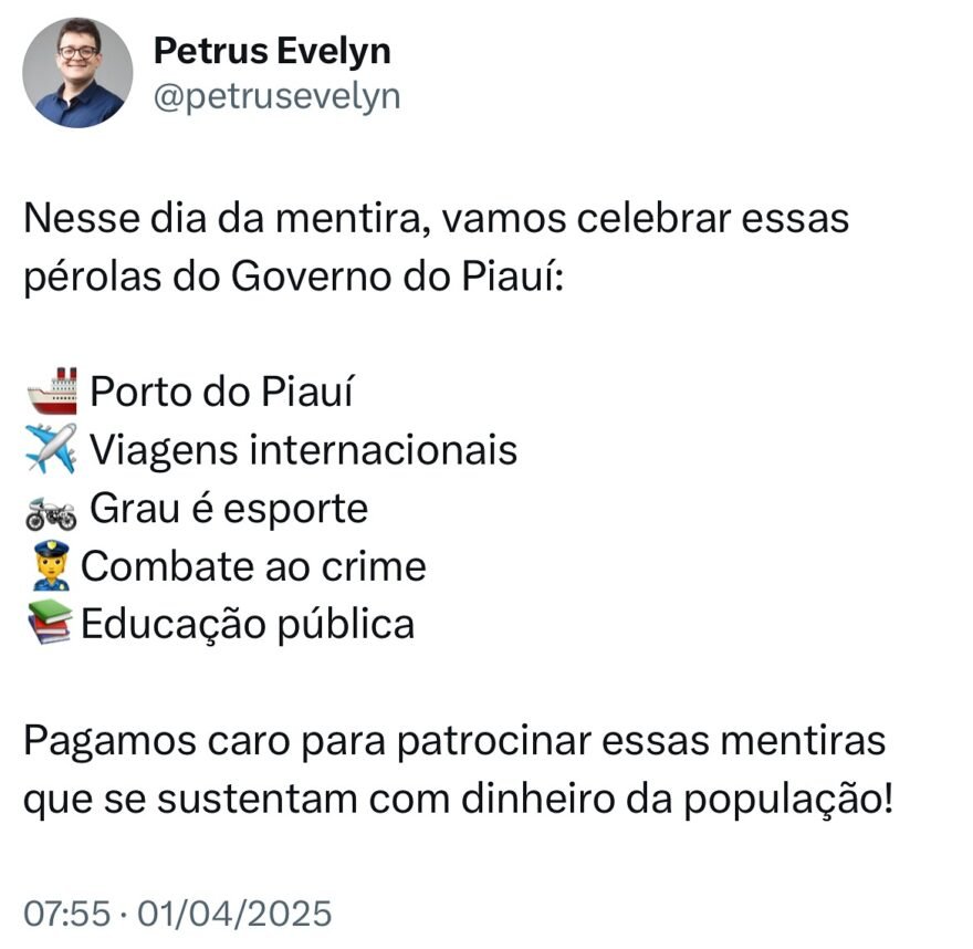 TÁ NA MÍDIA: Salve o dia da mentira! Posted by Bernardo Silva on 1 de abril de 2025 in Em Destaque Fonte: O Piauiense Em Destaque