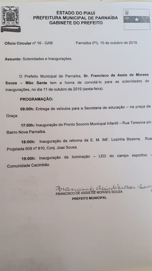Mão Santa aproveitou para agradeceu o deputado pela contribuição que vem dando à cidade de Parnaíba e disse que, além de utilizar os recursos para custeio, também pretende adquirir ambulâncias para suprir algumas carências no setor.