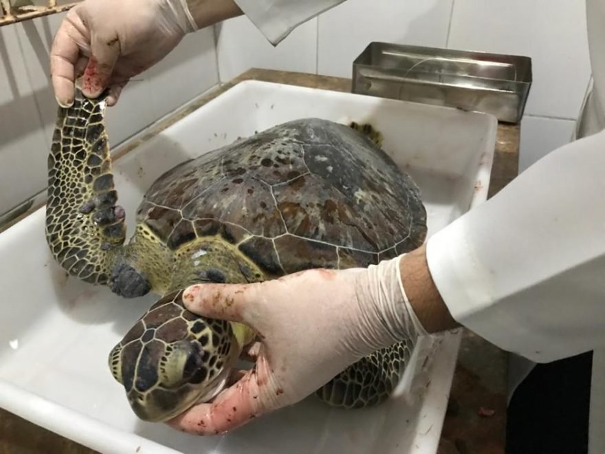 Tartarugas mortas tinham vestígios de óleo no intestino. (Foto: Reprodução/Instagram)