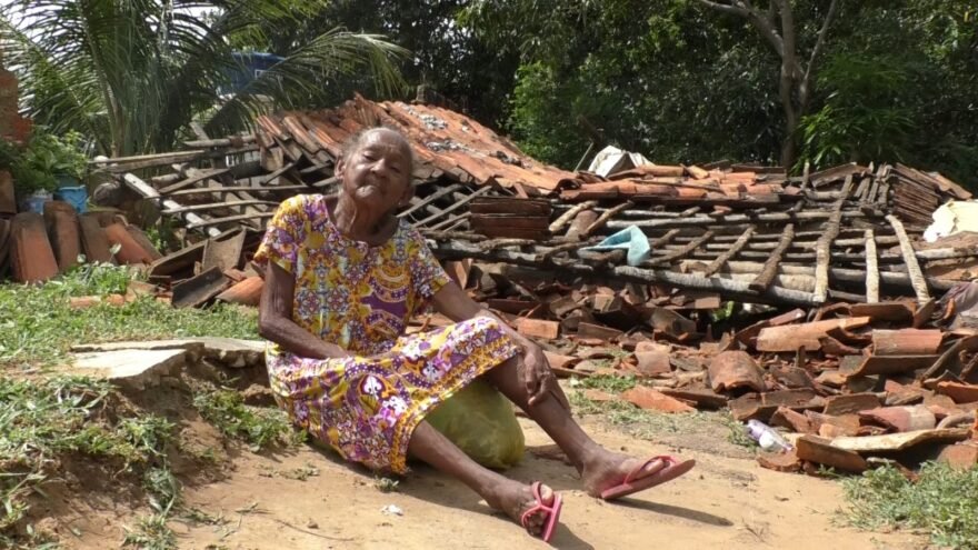 “Eu estava sentado na cama, quando o telhado caiu em cima de mim”, disse Domingos Alberto, que estava no local no momento do desabamento.