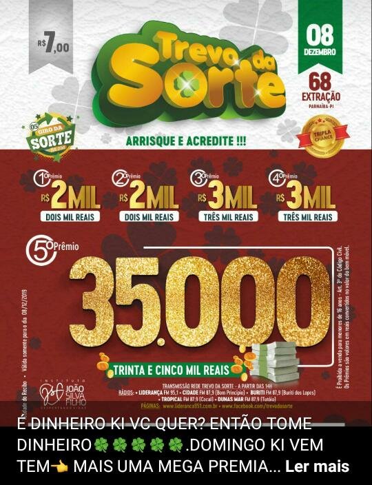Muita grana. Compre já sua cartela e arrisque com o Trevo da Sorte.