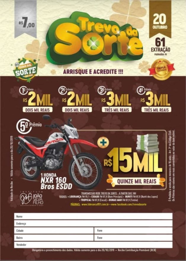 Muita grana. Compre já sua cartela e arrisque com o Trevo da Sorte.