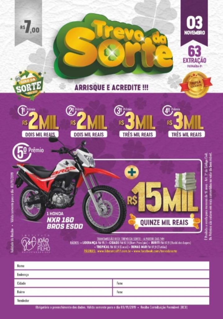 Muita grana. Compre já sua cartela e arrisque com o Trevo da Sorte.