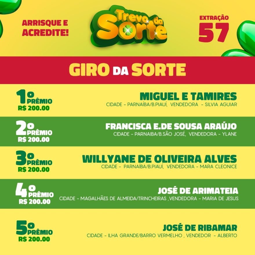 TREVO DA SORTE: Lista de Ganhadores da Extração e Giro da Sorte do dia 29 de setembro