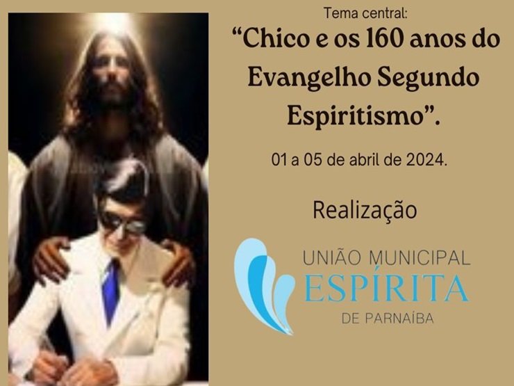 Tema central: “Chico e os 160 anos do Evangelho Segundo Espiritismo”.