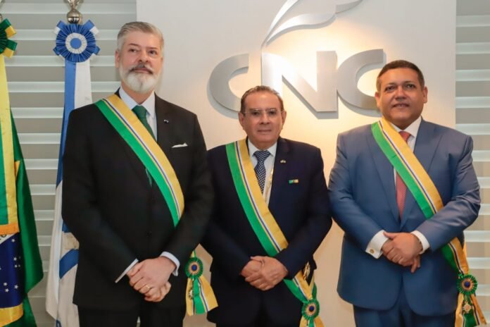 Valdeci Cavalcante, presidente do Sistema Fecomércio Sesc Senac no Piauí e 1º vice-presidente da Confederação Nacional do Comércio (CNC) presidiu nesta sexta-feira (06) a cerimônia de outorga da Ordem do Mérito Marquês de Paranaguá ao ministro do Supremo Tribunal Federal (STF) Kássio Nunes Marques e ao secretário de Clima e Relações Internacionais do Ministério do Meio Ambiente, Marcus Henrique Morais Paranaguá. O ministro e o secretário receberam a comenda no grau de Grã-Cruz.