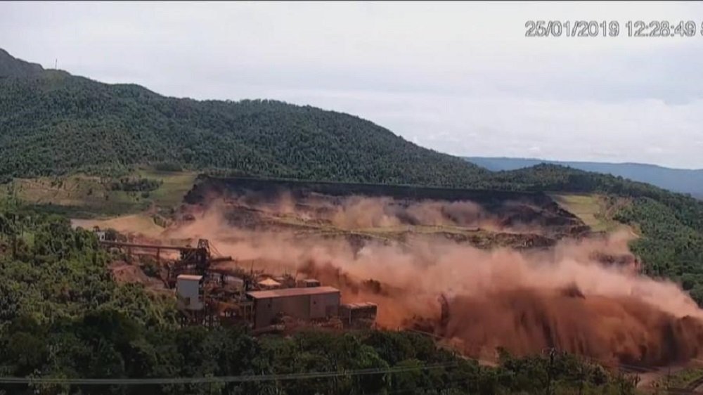 O momento exato em que a barragem da mina do Córrego do Feijão, em Brumadinho (MG), rompeu.