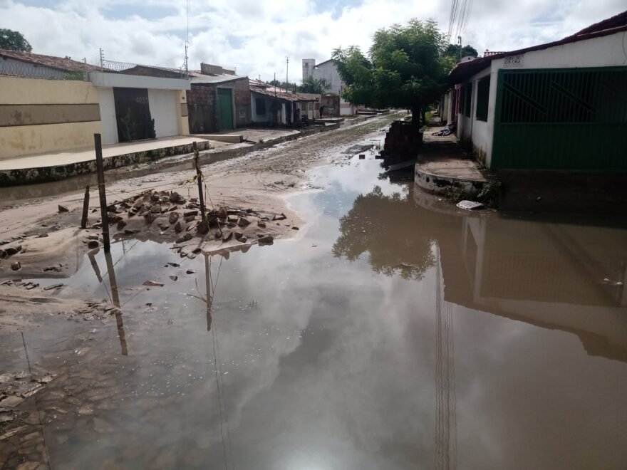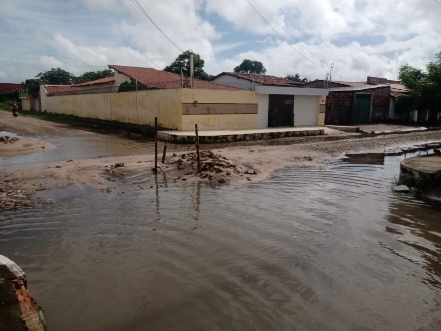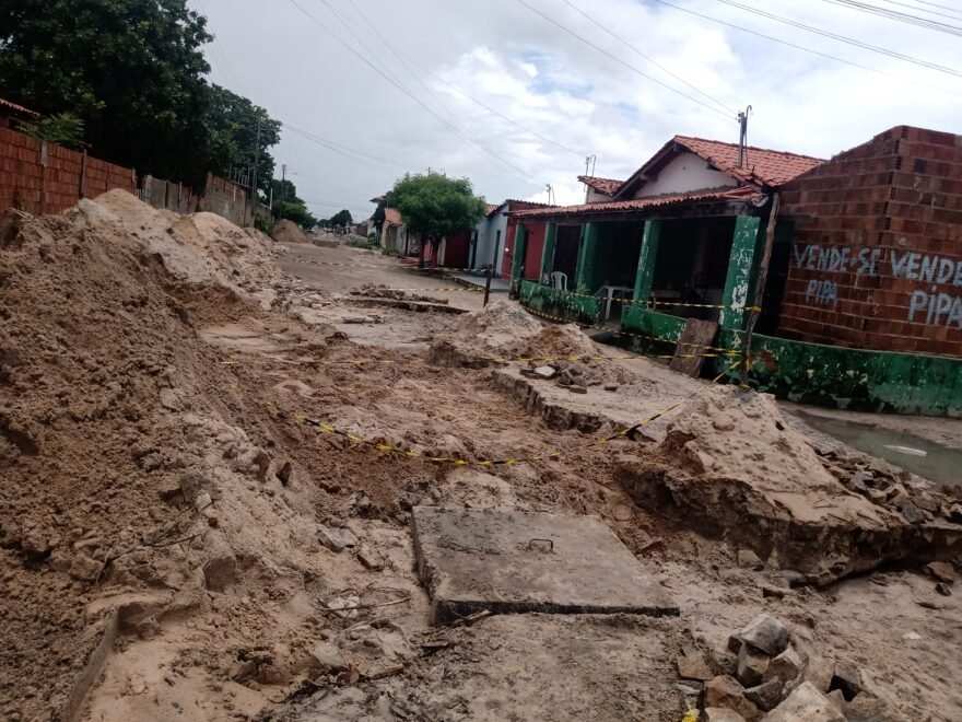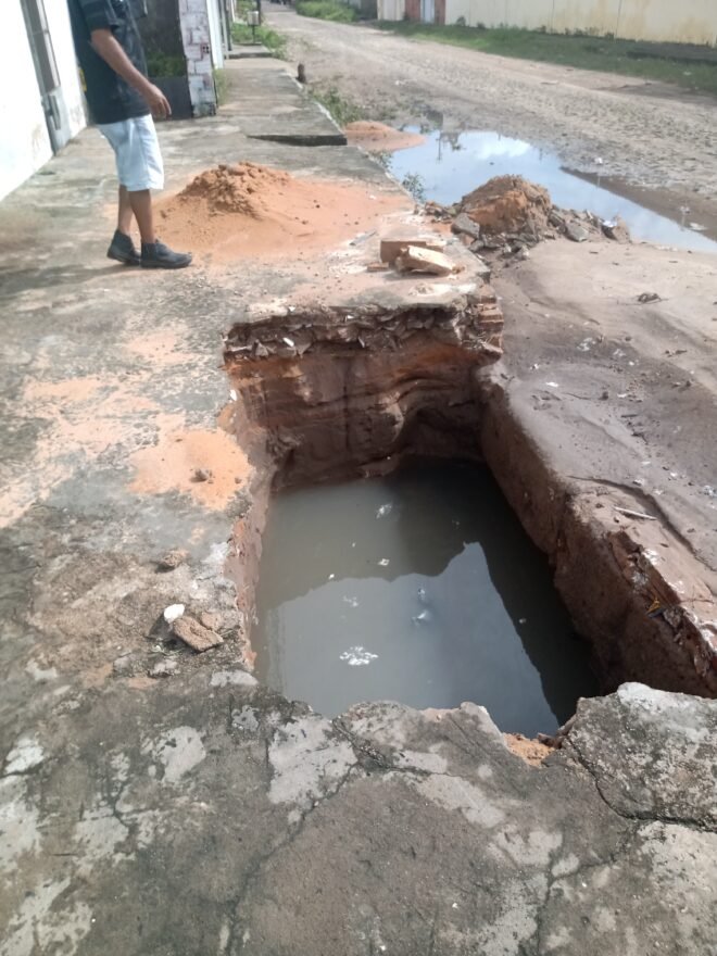 Na Rua Anhanguera, no Conjunto do Conjunto Betânia I, há dias uma equipe está lutando para acabar com uma lagoa que também se forma na área e invade residências. A obra está causando inúmeros transtornos e causando preocupações a quem mora nas imediações. Não há prazo para acabar. Vocês já imaginaram estas equipes trabalhando para acabar com os problemas dos Piscinões do Bairro Piauí e Bairro Frei Higino???